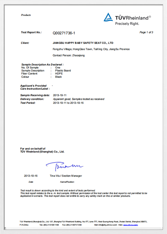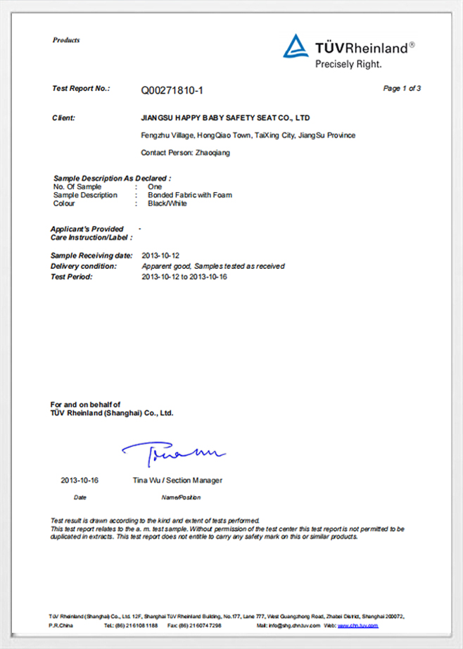 Tá sábháilteacht mar chuid de gach ciseal dár dtáirgí. Jiangsu CO Suíochán SÁBHÁILTEACHTA BABY HAPPY, TEO. Úsáideann chun cinn ábhair turraing-ionsú , mar shampla cúir EPP agus EPS, a thiteann ar leibhéal micreascópach le linn tionchair chun fuinneamh cinéiteach a scaipeadh.